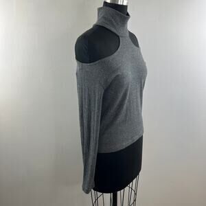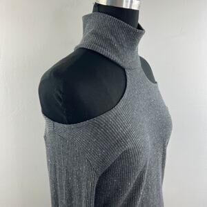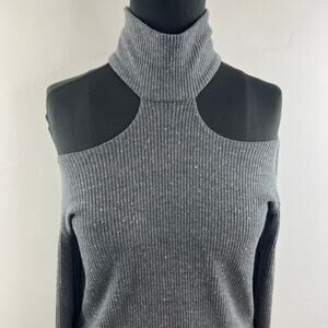 LNA Gray Sweater Ribbed Knit High Neck Cold Shoulder Trendy Pullover Size Small.