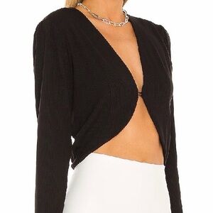 Sleek black crop top with long sleeves. Stylish and versatile for any look.