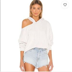 LNA Lion Hoodie Pullover in Off White Cutout Shoulder Drawstring Size XS