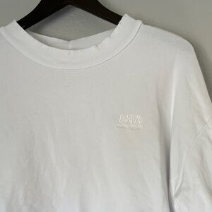 LNA Logo Distressed Hems Pullover Sweatshirt White XS