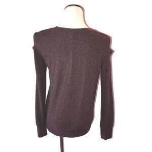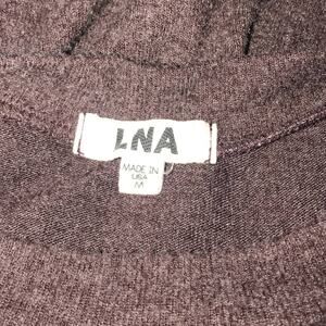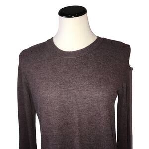 LNA open shoulder purple knit top. Long sleeves. Round neck. Pullover. Polyester, rayon, spandex. Hand wash. In preowned condition.