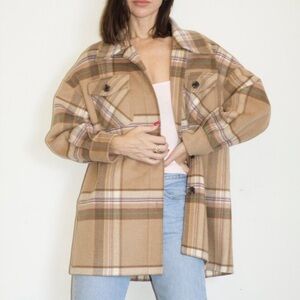 LNA Oversized Boyfriend Jacket Camel Plaid