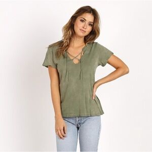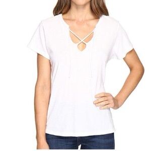 LNA Raw Tie Tee T-Shirt Short Sleeve Front tie V-neck Relaxed fit White Small