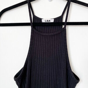 LNA Revolve Square Neck Ribbed Knit Sleeveless Midi Dress with Curved Hem