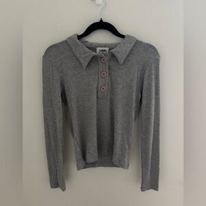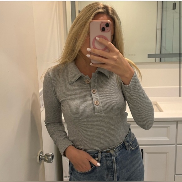 A simple and slim-fitting ribbed-knit top from LNA, which features a polo collar for an of-the-moment finishing touch.Tuck this versatile long sleeve into anything from high-waisted trousers to distressed denim.
