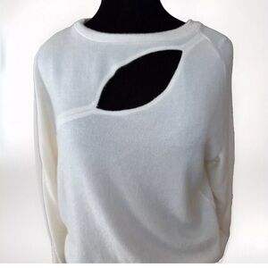 LNA Sweater Sz S Grey Cutout Top Ivory Eggnog Brushed Soft Stretchy Comfy Shirt