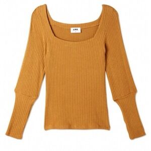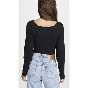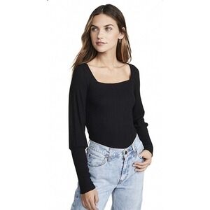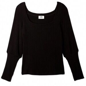 LNA Willa Balloon Sleeve Top Ribbed Long Sleeve Shirt Sz S in Black