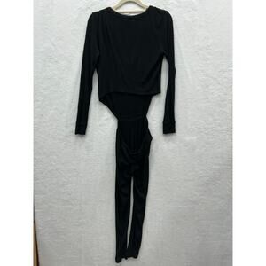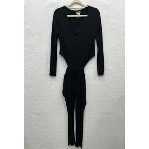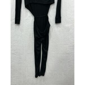 LNA Women's Black Ribbed V Neck Long Sleeve Side Cut Outs Jumpsuit Size XS