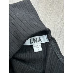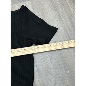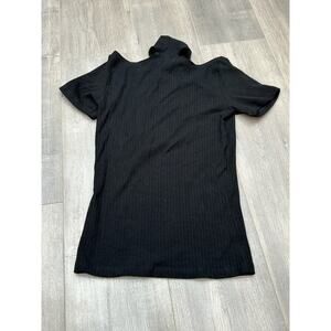 LNA Womens Cut Out Ribbed Blouse Top Mock Neck Short Sleeve T-Shirt Black Size S