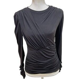 LNA black ruched long sleeve stretchy top. Made in California. Made of polyester and spandex. Euc