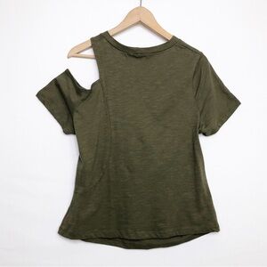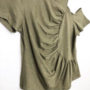LNA olive green ruched cutout shoulder t shirt top.