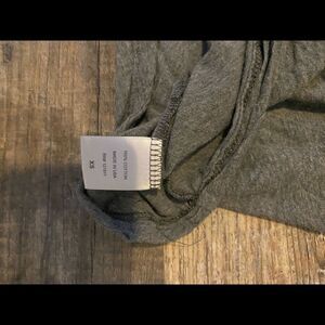 This has been worn many times. No flaws that I can find. The fabric is semi twisted on the v neck part but that is how it came to me. Can likely be fixed w a good iron