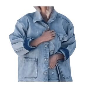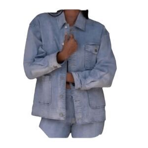 LNDN London Denim Sun Washed Oversized Denim Barn Jacket Light Wash S