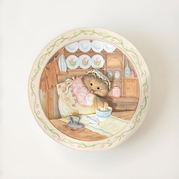 The LNIB Potter 3-D Bunny Plates by Bradford Exchange are vintage collector plates from the late 20th century. Featuring a multicolor design inspired by Beatrix Potter's characters, these ceramic plates showcase a unique 3-D bunny shape. Perfect for all occasions, these art pottery pieces were produced in the 1990s using traditional pottery techniques, making them a charming addition to any collection.