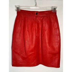 LNR Women's Knee Length Leather A-Line Skirt Red Size 6