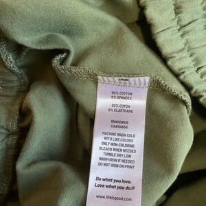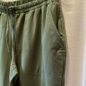 Gorgeous, soft, quality pants for everyday comfort. Olive green. Great for travel, at home, or anywhere you want comfort without sloppiness. I didn’t end up wearing these so I’m selling the set (boxy hoodie listed in my closet too.) Made in Peru. 92% cotton, 8% elastane. Waist is 14” but can be tightened with drawstring or stretched out more. Inseam is 26”. Rise 10.5”. Please bundle with the matching hoodie for a discount and one shipping fee. Thank you for looking🤗