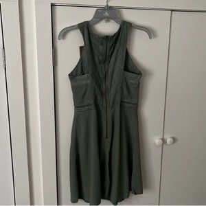 NWT. Lightweight flowy crepe material. Faux suede detailing at neckline, waist and upper back. Size S. Perfect condition. Super comfortable. Olive green color.