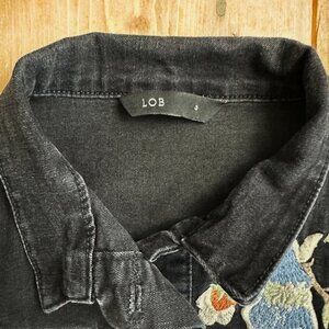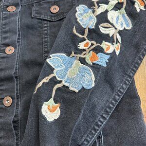 LOB Jean Jacket Black Embroidered Floral XS 3 Denim