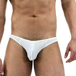 LOBBO Size M 100% Cotton Mesh Bikini Brief - White - LOB-WHT-M
