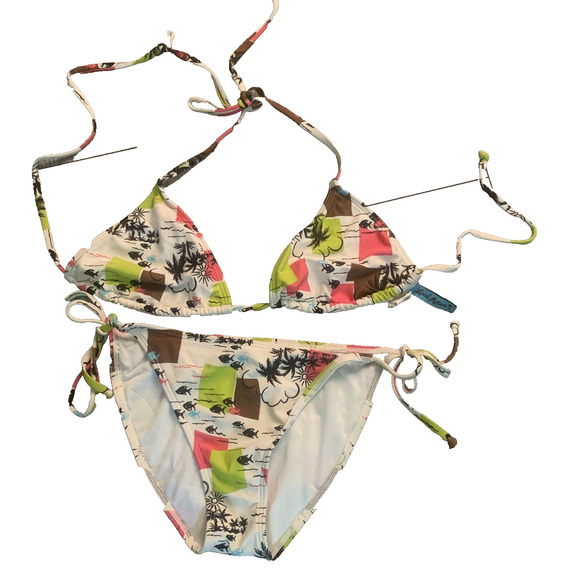 LOCAL MOTION WOMEN'S WHITE/PINK/GREEN TROPICAL FISH BIKINI LARGE IN EXCELLENT CONDITION!