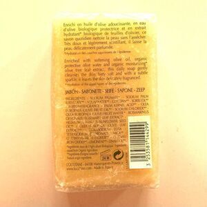 Enriched with softening organic olive oil, organic olive water and olive leave extract, this daily soap gently cleanses the skin. Very soft and with a subtle sparkle, it leaves the skin delicately fragranced.
