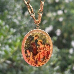 LOCKET – Large Courting Scene Gold Pendant NECKLACE