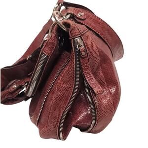 This Lockheart satchel crossbody shoulder bag is the perfect accessory for any occasion. With a solid pattern and burgundy exterior and lining, this bag exudes classic style. The bag has a zip closure and inner pockets, making it perfect for travel or casual use.
