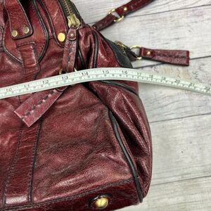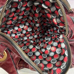 In good condition. Some wear as pictured from use and years. Inside lining has some small markings. Large burgundy shoulder purse. Has a lot of zipper compartments. Spacious purse. Genuine leather. Refer to pictures for measurements and condition. From smoke-free/pet-free home.