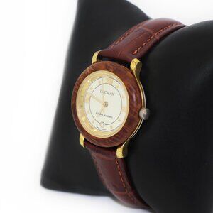 Case 28mm Stainless steel gold plated case with an Erica brier wood bezel