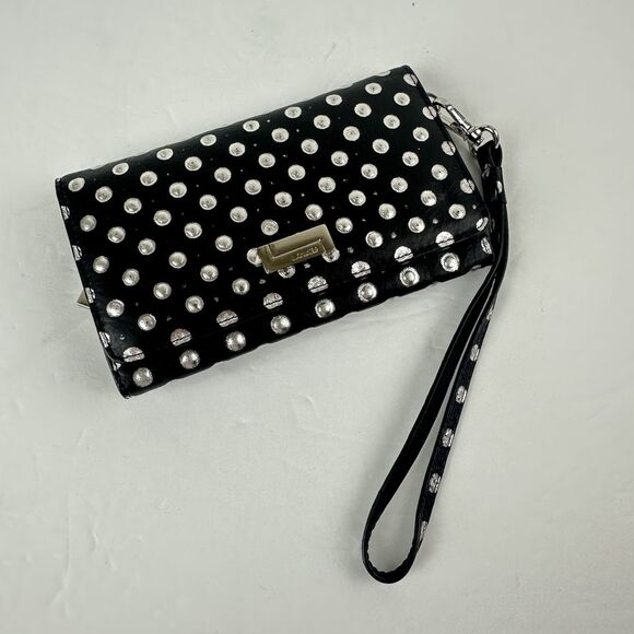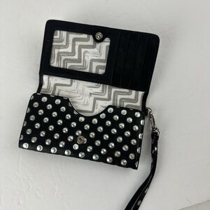 LODIS Black Silver Polka Dots Leather Bifold Wristlet Zip Coin Pouch Card Slots - No signs of use