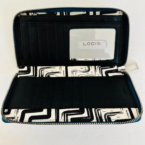 LODIS IRIS PYTHON EMBOSSED ZIP AROUND WALLET BLUE