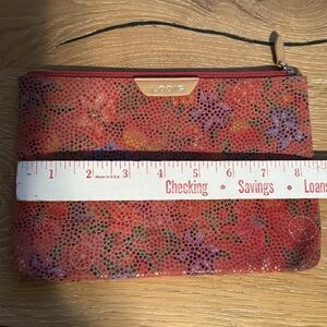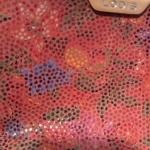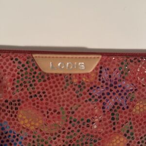 LODIS Leather Pouch Womens Pink/Multi Floral Zip top makeup bag Cords Travel
