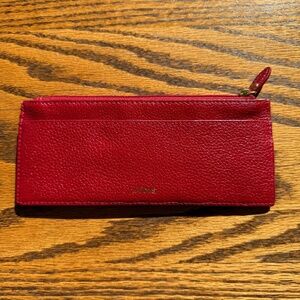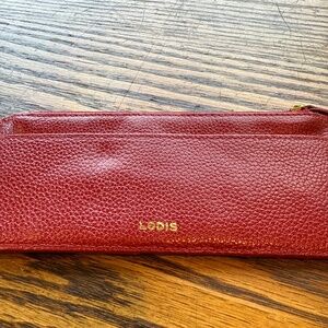 LODIS Red Pebble Leather Credit Card Holder Stacker Wallet Zip Top Slim