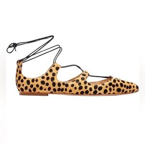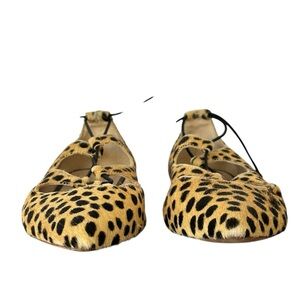LOEFFLER RANDALL Ambra Laceup Cheetah Animal Leopard print Calf Hair Flats Size 6