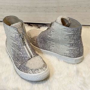 LOEFFLER RANDALL Devin Lizard Embossed Leather High-Top Sneaker SZ 6 Shearling Trim Zipper
