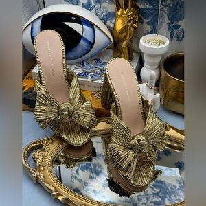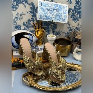 🆕 LOEFFLER RANDALL 🧿 NWOB Penny Metallic Gold Pleated Bow Heel, Sz 7