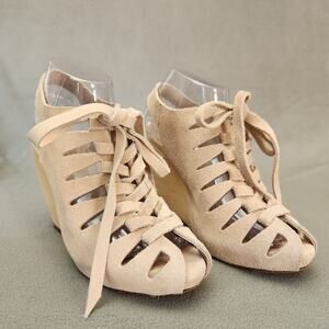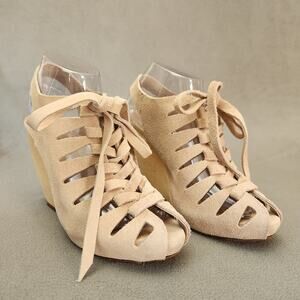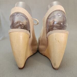 LOEFFLER RANDALL Vivian Lace Up Wedge Sandal Size 7.5B Natural Tan Slingback