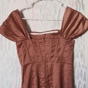 LOEL Off Shoulder High Split Long Formal Party Dress Evening Gown in Copper S