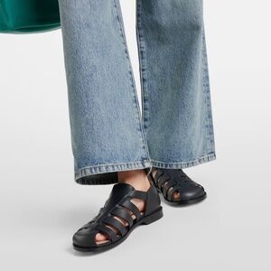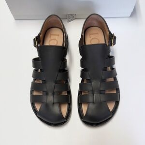LOEWE Campo Fisherman Sandals in Black Calfskin Leather Size 39