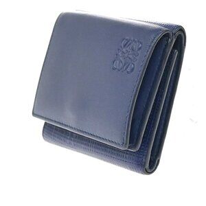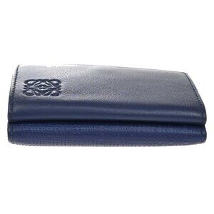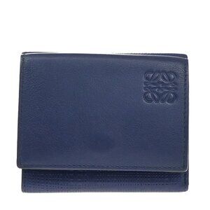 LOEWE Logo Trifold Compact Wallet Leather Navy Blue Made In Spain