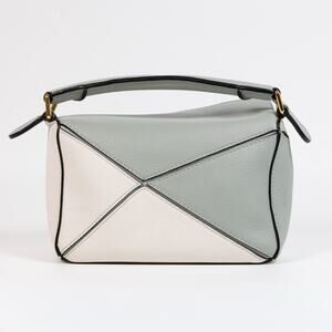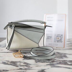LOEWE Mini Puzzle Shoulder Bag White/Ash Grey/Marble Green w/ COA