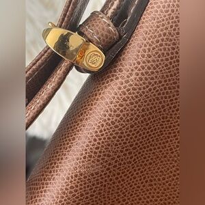 Beautiful Vintage LOEWE Leather Briefcase/Satchel in Camel✨Perfect for business or travel with shoulder strap and handle for your convenience✨Corners have rubbing(see pictures)✨light rubs/marks thru-out solid thick leather(see pictures)✨Gold-tone hardware✨Bag closes thru loop closure seen in pictures✨Pre-loved and well cared for with a very clean interior with a zip pocket✨I will also include a bag organizer seen in one of the pictures✨This is a very Stunning Vintage bag to last you many more years✨💯Authentic