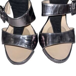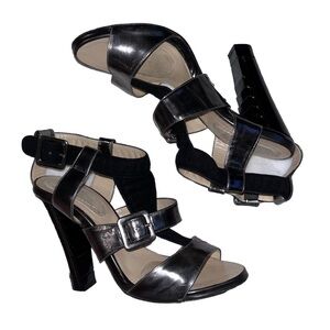 LOEWE sandal heels black silver size 8 t-strap leather slingback cone heel box