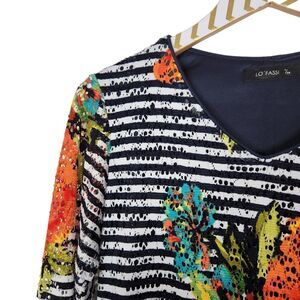 LO'FASSI Dress Womens 7 / 30 Blue White Eyelet Striped Floral Dress LOFASSI