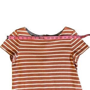 LOFT 100% Cotton Clay Orange-Brown + White Stripe Drop Waist Dress XS