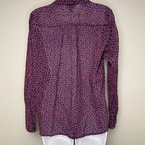 LOFT 100% Cotton Navy Pink Anchor Button Up Long Sleeve Nautical Top Size M