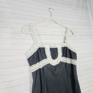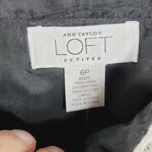 LOFT 100% LINEN BLACK DRESS, W CROCHET LACE DETAILS, SZ 6P