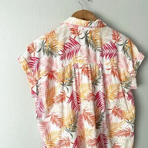LOFT 100% cotton cap sleeve button down palm leaf top women's size large