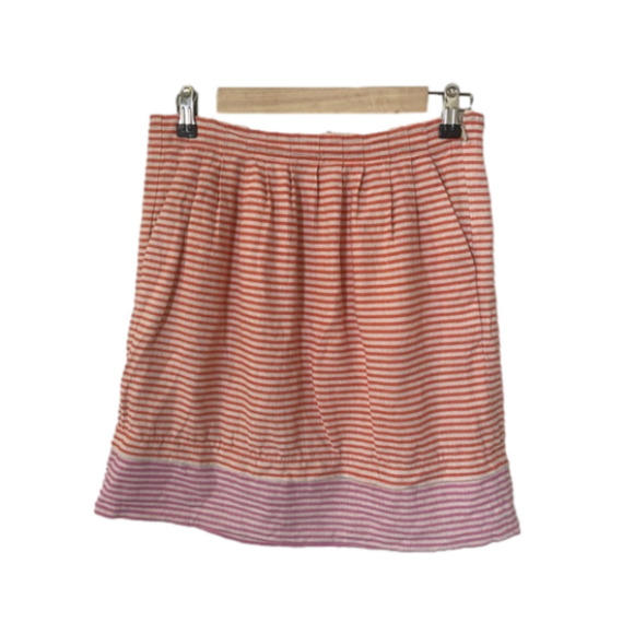 LOFT 100% linen pleated striped mini skirt spring summer pink size 2