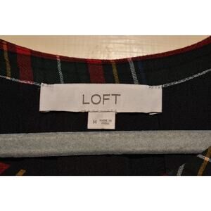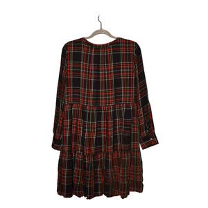 LOFT $109 Red Green Black Plaid Long Sleeve Tiered Shift Dress Medium